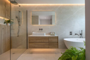 Adding a few well-chosen plants or wooden accessories can make a bathroom feel warmer and more inviting. Our team works with clients to integrate these elements seamlessly, so the space feels cohesive rather than cluttered.