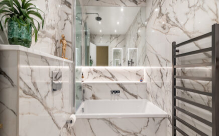 Luxury Calacatta Gold Bathroom A truly luxurious bathroom transformation, finished in stunning Calacatta Gold marble throughout. The bold yet elegant veining brings warmth and character to the space, creating a timeless, high-end feel. This bathroom is part of a Grade II listed building on Brighton seafront, adding a layer of historical significance to the project….
